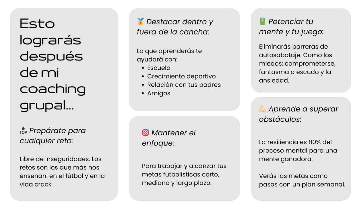 🎯 Puntos de mejora claros: con porcentajes en cada área del futbolista.